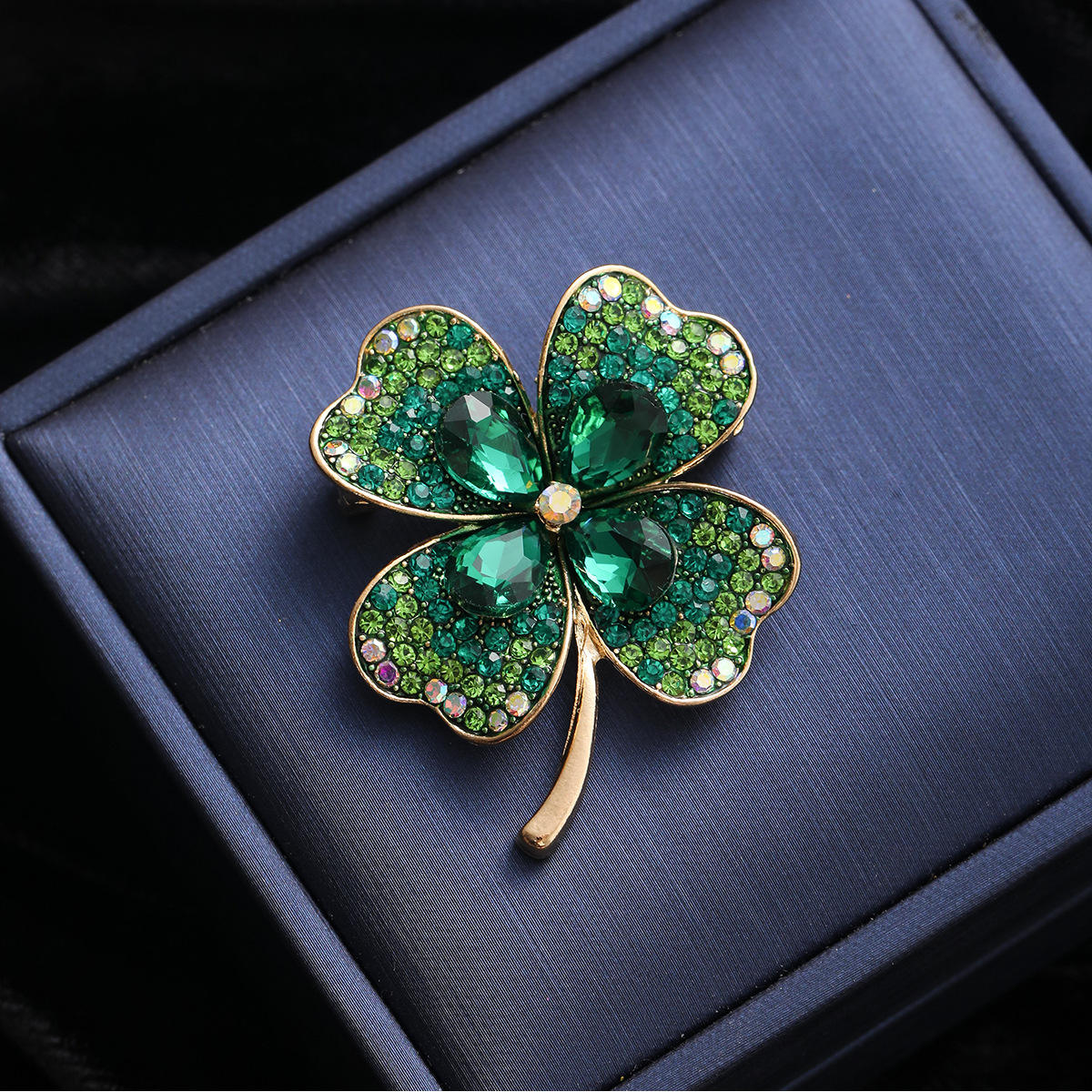 Factory Price Women's Literary Fan Four-leaf Clover Brooch Suit Pin Corsage New Accessories Perfect Gift for Children Main Alloy