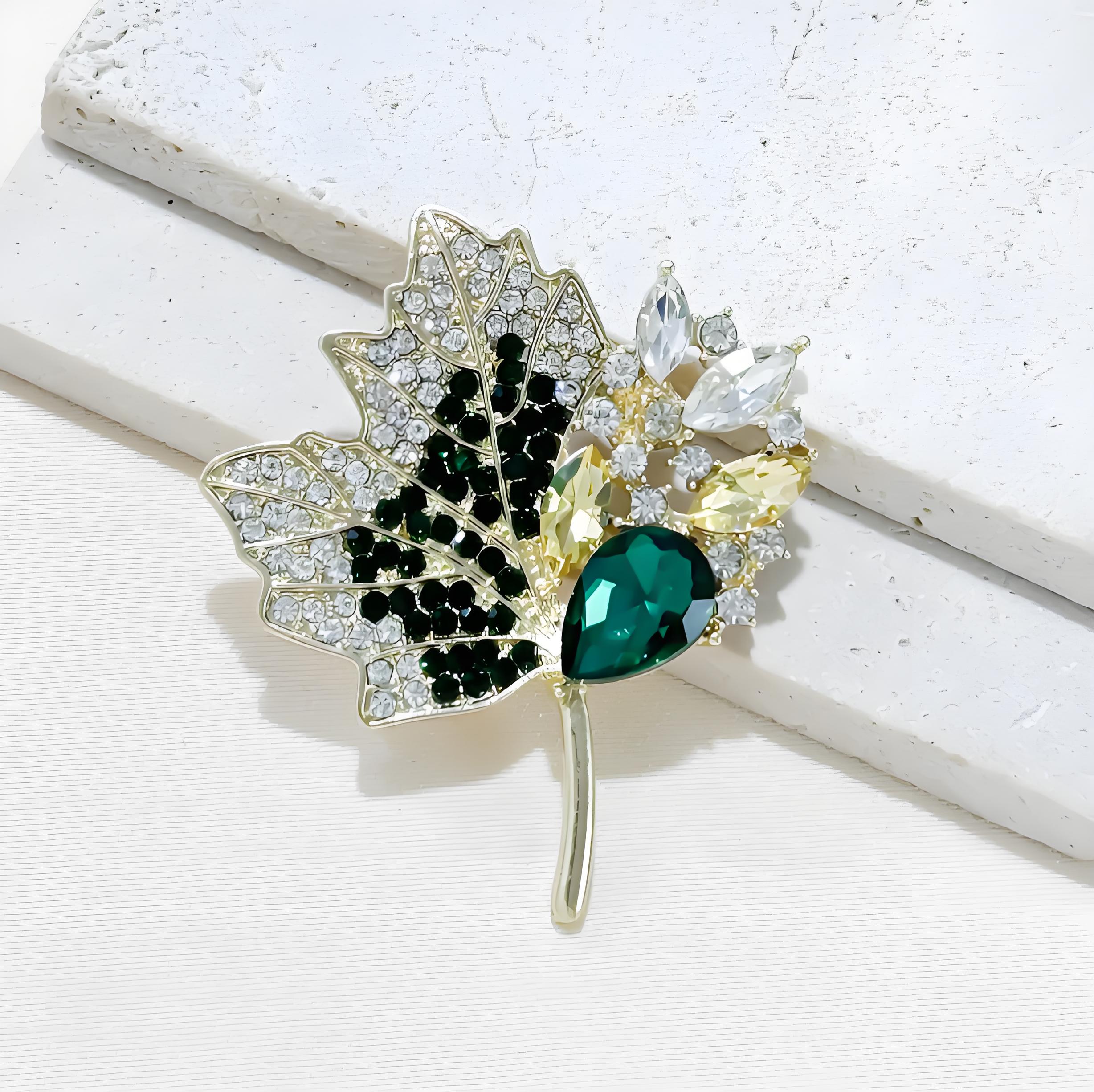 Maple Leaves Rhinestone Pins Brooch Niche Design Sense Light Luxury Suit Brooches Couple Dress Ornament High Quality Accessories