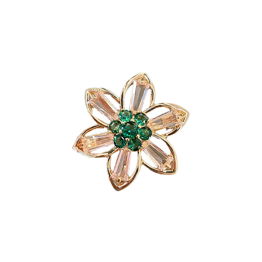 Exquisite Anti-Light Buckle High-Level Female Crystal Brooch Hollow-Out Floret Design Alloy Pearl Pin Accessories for Fixing