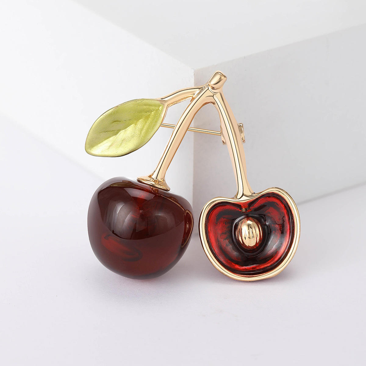 Fashion Sweet Brooch Gold Plated Drip Oil Red Cherry Brooches Women Fruit Scarf Pin Clothing Decoration Fashion Jewelry